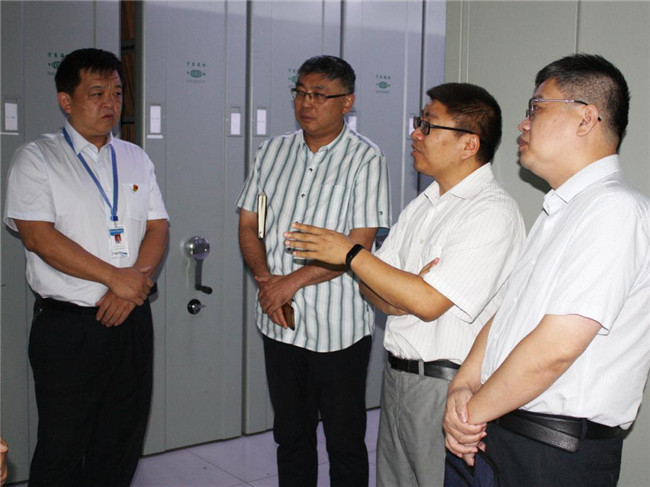 2020年7月24日,由市檔案館副館長畢研一、市委辦公室檔案管理科一級主任科員穆雷、市委辦公室檔案管理科科長張光輝等3位組成的檔案管理工作檢查組來到淄博市齊旭資產經營有限責任公司(以下簡稱市齊旭資產公司),對不動產登記檔案庫房安全管理工作進行檢查指導,實地視察了檔案庫房,并召開了現場會議。市自然資源局辦公室副主任史可、檔案管理科副科長張倩男,市不動產登記中心副主任盧勇、信息檔案科科長焦磊,齊旭公司總經理吳星等有關同志陪同檢查。