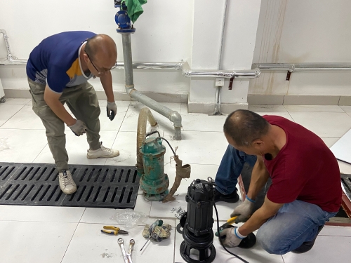 及時更換老舊設備。齊旭公司安全生產小組成員拆除重達1噸左右潛水泵井蓋,查看機器型號,及時更換兩臺老損嚴重的潛水泵,并安裝堅固、開啟方便的潛水泵井蓋,為防汛工作開展及日后維修管理工作奠定基礎。